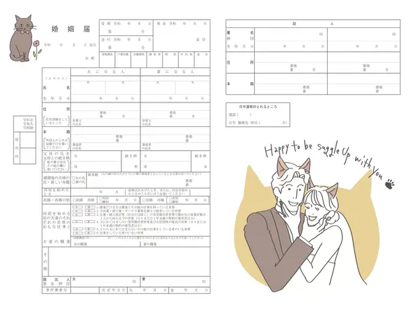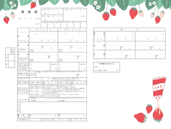 ハートやリボンなどのかわいいモチーフを描いたデザインやピンクを使ったかわいいカラーリングのデザインはもちろん、かわいらしいタッチで描いた楽しいデザインまで、心躍る愛らしい婚姻届をラインナップ。かわいいもの好きのおふたりは、ぜひかわいいカテゴリからお好みのデザインをお探しください。