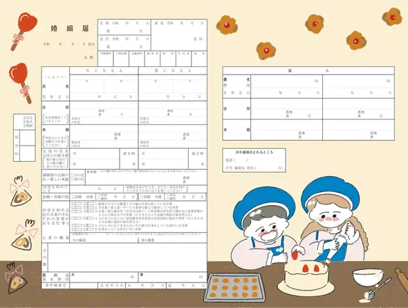毎日を甘く幸せな気持ちで過ごしたいおふたりへ。協力して美味しいお菓子を作るように、喜びや幸せを分かち合いましょう。お菓子作りが趣味のおふたりや、2月の入籍にふさわしい一枚です。