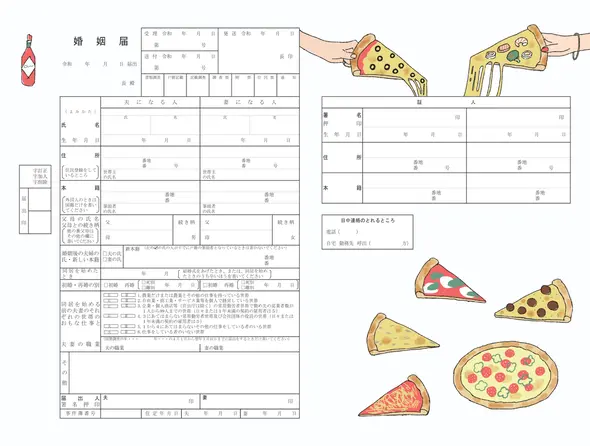 「愛」や「無垢な心」の花言葉を持つ野バラが描かれたこの婚姻届は、ふたりの新しい人生の始まりを祝福するのにぴったり。秋に入籍を予定しているカップルにもおすすめです。