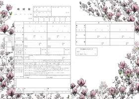 繊細な線画で表現した桜モチーフが、ふたりの記憶の中の美しい桜を思い起こさせてくれる、ロマンティックな婚姻届。フォトジェニックな愛らしさと、春のあたたかな空気感で心を満たすデザインが、春入籍のふたりに心からの祝福を贈ります。