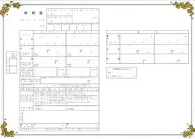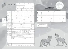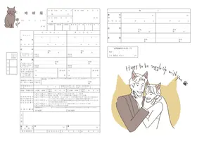 モノクロでスタイリッシュにまとめられたAi Arakiとエニマリのオリジナルコラボデザインの婚姻届です。荘厳なチャペルを中心に広がる無数の道。道の先には「Anniversary」や「Best Day Ever」など結婚にまつわるワードが添えられ、おしゃれな地図を描きます。